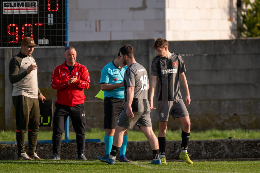V 71. minúte sa zažltilo aj na našej strane, keď Radovan Božoň zastavil pridržaním súpera. V 72. minúte nastúpil Tomáš Puchý a na záver sa dostal na ihrisko aj Dominik Gúčik, ktorý striedal dnes vynikajúco hrajúceho Jozefa Mašána.