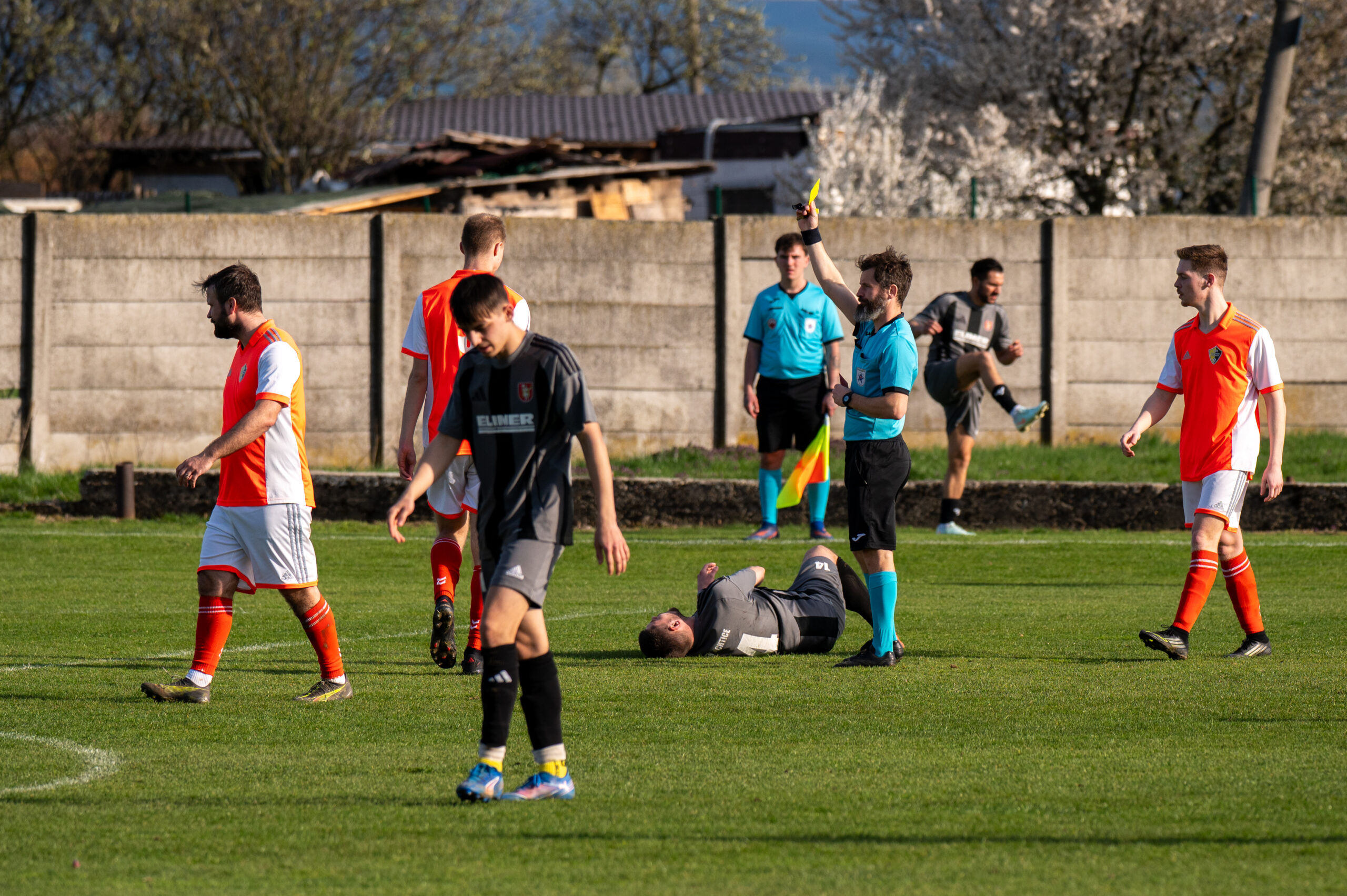V 71. minúte sa zažltilo aj na našej strane, keď Radovan Božoň zastavil pridržaním súpera. V 72. minúte nastúpil Tomáš Puchý a na záver sa dostal na ihrisko aj Dominik Gúčik, ktorý striedal dnes vynikajúco hrajúceho Jozefa Mašána.